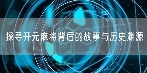 探寻开元麻将背后的故事与历史渊源,了解这款传统游戏的起源、演变及文化影响,带你走进麻将的世界。